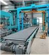 प्यालेटाइजिङ प्रणालीले प्यालेटबाट उत्पादनहरूलाई क्ल्याम्प गर्दछ र तिनीहरूलाई बाहिर निस्कने कन्वेयरमा क्रस-स्ट्याक गर्दछ, र त्यसपछि तिनीहरूलाई प्यालेटिङ क्षेत्रमा लैजान्छ र पछिको चरणमा उत्पादनहरूको प्यालेटिङ र प्याकिङको स्वचालन महसुस गर्न। प्यालेटाइजरमा चारवटा रबर स्लिभ क्ल्याम्प आर्महरू छन्, हाइड्रोलिक रूपमा संचालित छ, र 360 डिग्री तेर्सो रूपमा सार्न सक्छ।